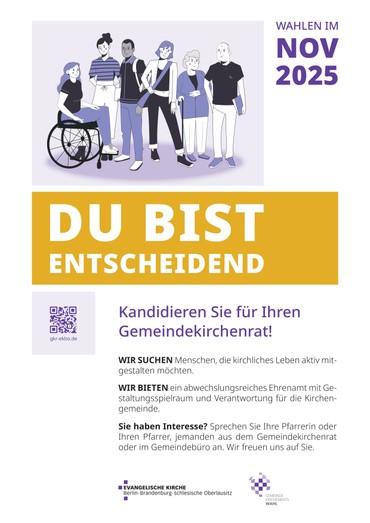 In der EKBO finden im November dieses Jahres die Ältestenwahlen statt. Für die Sprengel Görlitz und Potsdam wurde ein „Wahlzeitraum“ bis 21. Dezember festgelegt, der Sprengel Berlin wählt am 30. November, also am 1. Advent. Rund 720.000 Kirchenmitglieder ab 14 Jahren sind eingeladen, sich an der GKR-Wahl zu beteiligen.